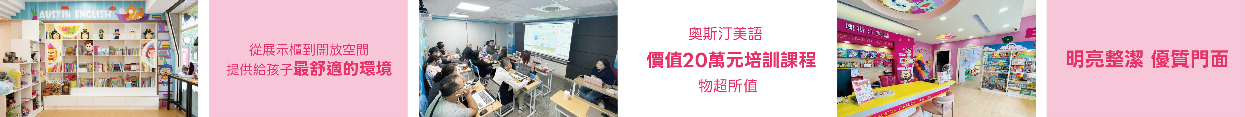 為什麼選擇 奧斯汀美語 奧斯汀美語陪伴孩子快樂學美語超過十年,已進入上萬家庭。我們不只教語言,更贏得家長信任,累積無數成功故事選擇奧斯汀,就是選擇專業教學與完整支援,讓孩子學美語更輕鬆,家長更安心 為什麼選擇 奧斯汀美語 奧斯汀美語陪伴孩子快樂學英語超過十年 深受上萬家庭信任不只教語言,更用專業與完善支援 讓孩子學得開心、家長更放心 跑馬燈不變形 奧斯汀美語 —— 打造新世代美語品牌! 奧斯汀美語打造新世代美語品牌! 加盟創業首選品牌 擁有穩健的市場信任度與教學口碑,是語言補習體系中最受肯定的品牌之一。完備的教學制度與校務輔助讓新加盟者輕鬆上手、快速上軌道。 數位整合與教材研發 採用 AI 整合教學平台,支援智慧語音評估、個人化學習路徑規劃與即時回饋,幫孩子們掌握學習盲區。獨家開發專利認證五環教學法與點讀教材,養成孩子隨聽、隨點、隨時練習的習慣,在家也能輕鬆學習。 數位整合與教材研發 採用 AI 整合教學平台,支援智慧語音評估、個人化學習路徑規劃與即時回饋,幫孩子們掌握學習盲區。獨家開發專利認證五環教學法與點讀教材,養成孩子隨聽、隨點、隨時練習的習慣,在家也能輕鬆學習。 全國讀者劇場 桃園展演中心 國際級表演舞台 可容納1,500人定期舉辦全國性大型賽事活動,旨在提供孩子們展現自我的舞台,透過實際的舞台歷練,培養自信與領導力,啟發未來的潛能。 奧斯汀美語加盟 從開業到經營,奧斯汀都與您並肩! 從選址、裝潢到招生,讓您起步沒壓力, 收入0抽成,努力多少就賺多少! 讓您穩穩站穩教育市場,即使零經驗也能輕鬆上手! 快來了解加盟資訊,填寫表單! 從開業到經營奧斯汀都與您並肩! 快來了解加盟資訊,填寫表單! 專業廣告行銷 策略精準執行 專業廣告行銷策略精準執行 奧斯汀美語以全方位行銷策略與資源快速提升品牌影響力凝聚家長與孩子的歸屬感打造專業又有溫度的教育品牌 🌟 第一時間捕捉家長的目光 🌟 在眾多的補習班招牌中,第一眼吸引你的特色是什麼呢?顏色?字體?還是吉 閱讀更多 » 🌐 為什麼在數位時代,社群經營比以往更加關鍵? 🌐 隨著社群媒體成為日常生活的重要一環,家長在選擇補 閱讀更多 » 📧 全方位數位行銷,打造穩定又強大的招生引擎 📧 在數位時代,家長的行為模式早已轉變。從搜尋學習資源 閱讀更多 » 🪁 地方深耕,打造品牌在地信任力 🪁 除了全國性的品牌曝光,補習班要能永續經營,真正的關鍵在於「 地 閱讀更多 » 📜 招生無壓力,SOP系統打造補習班穩定成長動能 📜 許多有心投入教育產業、想經營補習班的人,常常卡 閱讀更多 » 學區保障機制 透過總部專業評估機制,確保每家分校開在最佳地點,以單一學區劃分,有效保障經營區域,幫助加盟創造最大坪效利益。 全方位資源整合支援 找點立案到裝潢設計及完整師資培訓、教學輔導、行銷規劃策略等,總部都有專人陪跑,一條龍服務。 全方位資源整合支援 找點立案到裝潢設計及完整師資培訓、教學輔導、行銷規劃策略等,總部都有專人陪跑,一條龍服務。 點擊觀看點擊觀看點擊觀看點擊觀看點擊觀看 行銷策略規劃 針對招生、大型活動投入大量的廣宣資源。透過社群平台、Google廣告、電視宣傳等,持續增加品牌曝光度,提供加盟主強而有力的廣告資源! 點擊觀看點擊觀看點擊觀看點擊觀看點擊觀看 行銷策略規劃 針對招生、大型活動投入大量的廣宣資源。透過社群平台、Google廣告、電視宣傳等,持續增加品牌曝光度,提供加盟主強而有力的廣告資源! 奧斯汀創業故事 Vanessa 主任 奧斯汀美語 桃園文山校 身為奧斯汀美語直營校主任,我深刻感受到總部在教學、招生與營運上的全方位支持。從完善的培訓制度到行銷與課程資源,讓我們能專注在孩子的學習表現與家長的滿意度上。 在帶領團隊的這段時間裡,我看到孩子從害羞不敢開口,到能流暢、自信地用英文表達自己,那份成長是教育最真實的回饋。 對我而言,奧斯汀美語不只是工作,而是一個能讓教育熱情持續發光、見證孩子夢想起飛的地方。 經營年資 4 年 魏良勳 主任 奧斯汀美語 三峽北大分校 自八年前加入奧斯汀美語以來,我深刻感受到總部從環境設計、招生規劃到AI智能系統與專利教材導入的全方位支持,讓我們能專注在孩子的學習成效與家長的滿意度。 身為教育工作者三十餘年,我堅信教育的使命在於點燃孩子的學習熱情。奧斯汀對教學品質的堅持,讓我見證了孩子們自信成長的喜悅,也實現了我長年以來的教育理想。 加盟年資 8 年 加盟流程 一站式服務 全程協助! 從找點、立案到教學、招生與行銷,總部全程支援,讓加盟經營更順利。 不額外抽成,收益全歸您! 加盟營收不需分潤,所有收益皆由加盟主掌握,減輕經營壓力。 系統化教學資源 提升效率! 專利教材、教學系統與行銷工具齊全,讓經營更有效率、孩子學得更好。 加盟資格與條件熱愛教育與服務具備熱情、耐心與積極的態度,樂於陪伴孩子學習,並與家長保持良好互動。我們相信,教育不只是傳遞知識,更是點亮孩子生命的一盞燈。如果您對教育懷抱熱情、對孩子充滿耐心、對家長願意傾聽與溝通,那麼您已經擁有最關鍵的特質。 一站式服務 全程協助!從找點、立案到教學、招生與行銷,總部全程支援,讓加盟經營更順利。不額外抽成,收益全歸您!加盟營