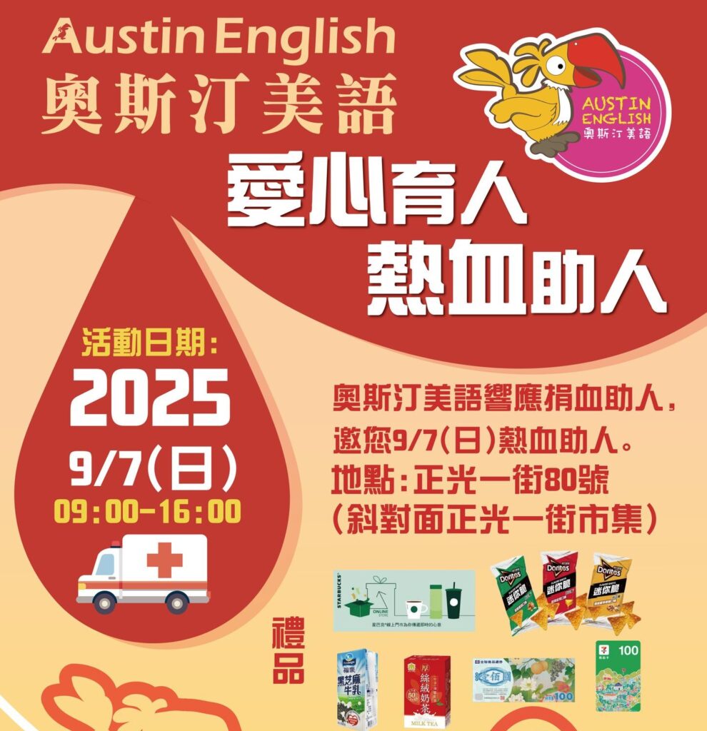 熱血做公益!跟著奧斯汀美語一起捐血送愛心!